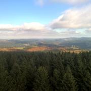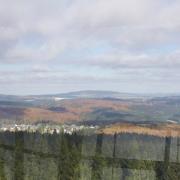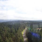 Kurz vor Ende des Rundweges erreichten wir die bekannte Rennsteig-Turmbaude in einer Höhe von 830 Metern. Einige stiegen die Treppen hinauf, um den wunderschönen Blick über den Thüringer Wald zu genießen und Fotos zu machen.