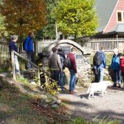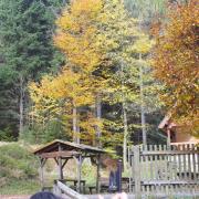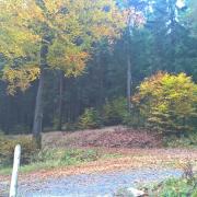 Nach diesem informativen Besuch fuhren wir direkt nach Masserberg zum Wandern. Unser Ziel war die Werraquelle, die wir über einen Rundwanderweg erreichen wollten. Auf dem Parkplatz in Masserberg merkte Silke plötzlich, dass sie ihre Jacke im Gewürzmuseum vergessen hatte. Nur gut, dass Thomas Reserven im Auto hatte und Silke nicht frieren musste. Das Wetter war uns hold. Blauer Himmel und der Herbst zeigte sich in seinen schönsten Farben. Die Werraquelle entspringt hier in rund 800m NN südlich des Eselsbergs. Seit Jahrzehnten streitet man über die eigentliche Quelle der Werra. Nicht weit vom Bleßberg bei Siegmundsburg, an der Nahtstelle vom Thüringer Wald zum Thüringer Schiefergebirge, entspringt der zweite Arm der Werra. Einheimische sprechen von der "echten" und der "falschen" Werraquelle. Auch heute noch wird so manche Wortschlacht zwischen Fehrenbachern und Siegmundsburgern geführt. Mehrere Untersuchungen und Gutachten wurden auf Grund der Streitigkeiten in Auftrag gegeben. Diese konnten jedoch keine eindeutige Klärung herbeiführen.
